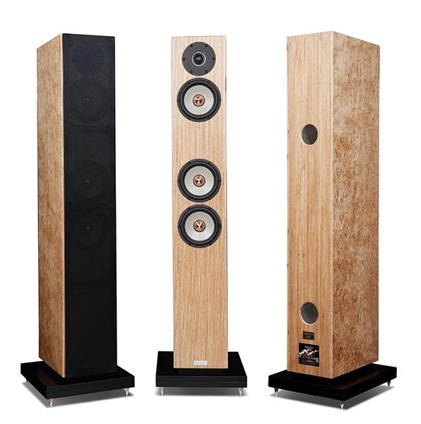 다음으로 세레나데 시그너처에 사용된 드라이버를 살펴보자. 잘 알려진 것처럼 동사 대부분의 스피커들은 노르웨이 시어스 사의 엑셀 시리즈를 사용하고 있다. 먼저 트위터의 경우는 2.9cm 패브릭 돔이 채용되었다. 헥사딤(Hexadym) 마그넷이 사용되었고, 내부에는 6개의 하이 퀄러티 네오디뮴 마그넷이 장착되어 있다. 그리고 마감은 다이캐스팅 백 쳄버로 견고하게 처리되었다. 다음으로 중역 및 저역용으로 상용되는 미드·우퍼의 경우는 14.5cm 사이즈를 사용하고 있는데, 마찬가지로 시어스 사 엑셀 유닛으로 고강성 경량 재질의 마그네슘 진동판을 채용한 타입이다. T 모양의 폴피스가 적용되어 있고, 트위터와 마찬가지로 6개의 네오디뮴 마그넷이 장착되어 있다. 그리고 시어스 엑셀 시리즈의 상징으로 불리는 구리 페이즈 플러그와 구리 링이 장착되어 있다. 참고로, 우퍼와 미드·우퍼의 크로스오버는 180Hz이며, 미드·우퍼와 트위터의 크로스오버는 4kHz로 다소 높게 설정되어 있다. 이로써 주파수 대역은 32Hz-30kHz로 완성되었다. 캐비닛의 경우는 19mm 자작나무 합판과 22mm MDF로 제작되었으며, 하단의 전용 받침대를 일체형으로 결합했다. 후면 베이스 리플렉스 포트에는 위·아래 알루미늄 파이프로 제작된 두 개의 덕트가 배치되어 있으며, 하단에는 WBT 사의 바인딩포스트를 싱글로 채택하고 있다.