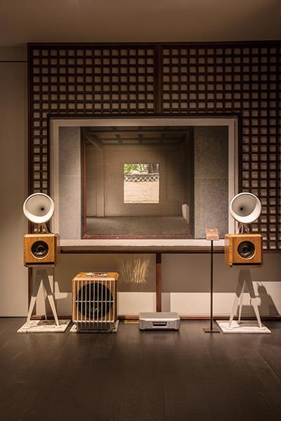 그리고 별도의 공간에는 또 하나의 OMA 룸이 마련되어 있다. 이곳 역시 아래 층의 공간과 완전히 다른 모습으로 꾸며 놓았다. 이곳은 특이하게도 한국적이고 고전적인 정서가 엿보인다. 격자무늬의 문창살로 벽면을 꾸민 것인데, 아날로그적인 OMA 제품과 절묘한 조화를 이루고 있다. 누구든 시선을 뺏길 수밖에 없는 OMA의 걸작 스피커, 아이로닉(Ironic)이 철왕좌처럼 강인한 모습으로 자리 잡고 있고, 귀여운 혼 스피커 미니(Mini)가 다른 편에 세팅되어 있다. 흑기사 같은 모습의 블랙 나이트 진공관 앰프 역시 만나볼 수 있는데, 특이하게도 807 진공관을 채용하고 있다. OMA의 창립자, 조나단 바이스가 이곳을 찾는다면, 아마 흐뭇한 미소로 자신의 제품을 감상할 것이 분명하다. 오랫동안 자리하고 싶은 운치 있는 공간이다.