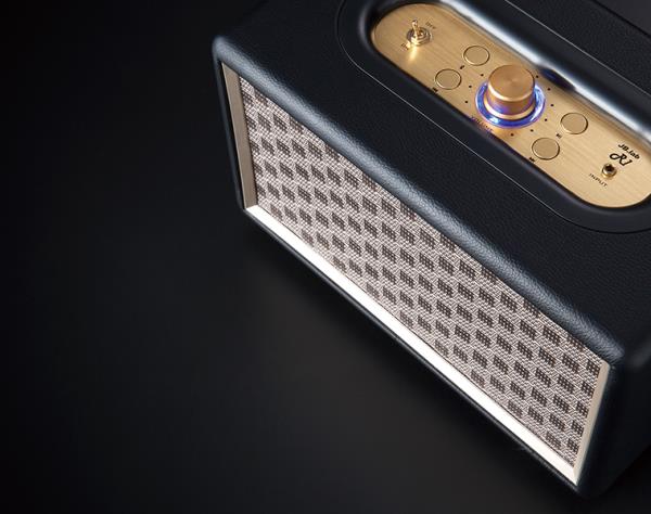 디자인은 역시 요즘 유행하는 클래식 트렌드를 제대로 알고 접근한 듯한 인상이다. 50-60년대 유행하던 라디오 디자인이지만, 이 평범한 직사각형 규격은 묘한 안정감과 감수성을 불러일으킨다. 개인적으로도 하이글로시로 잔뜩 치장한 화려한 디자인보다는 이런 덤덤한 레트로 디자인이 훨씬 매력적이다. 전면 역시 오래 전 그 느낌을 담아내기 위해 패브릭 그릴 처리되어 있는데, 사진으로 이 느낌이 그대로 잘 전달될지는 모르겠지만, 실제로 보면 굉장히 고급스럽게 여러 빛깔을 담아내고 있다. 인클로저 표면 역시 가죽 느낌의 소재로 마무리되어, 그 옛날의 감촉을 그대로 재현하고 있다. 상단의 컨트롤 부는 금색으로 통일하고 있는데, 커다란 볼륨 노브, 기능 버튼, 그리고 전원 토클 스위치까지, 금빛의 고풍스러운 매력이 잘 융화되어 있다. 볼륨 노브에는 푸른 빛의 LED를 달아놓아서, 블루투스 페어링 상태를 확인할 수 있다.