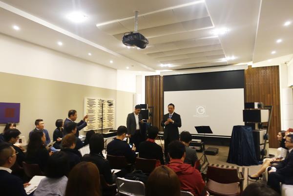 골드문트 플래그십 스토어는 골드문트의 주력 라인업이 모두 전시되어 청음 가능한 곳으로, 골드문트 특유의 하이엔드 사운드를 만끽할 수 있는 국내 최대 규모의 골드문트 전문 매장이다. 이곳에서는 골드문트 하이엔드 사운드의 정점을 들려주는 최고의 화제작 아폴로그 애니버서리를 직접 만나볼 수 있기도 하다. 그 아폴로그 애니버서리 앞에 이번 발표회의 주인공 로고스 수카가 베일에 싸인 채 세팅되어 있었다.