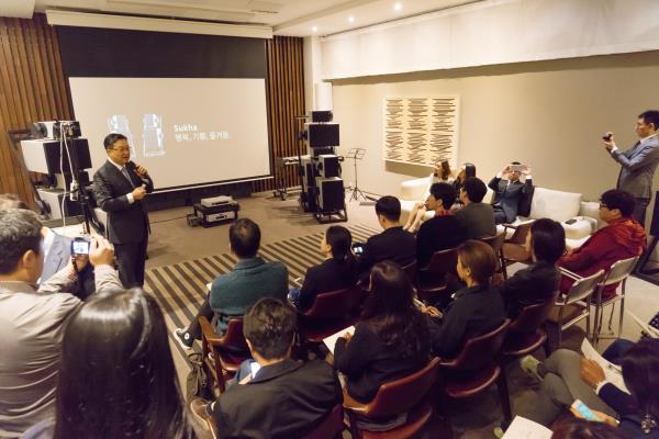샌드 아트와 재즈 공연이 끝난 후 베일이 벗겨지며 본격적인 골드문트 로고스 수카에 대한 이야기들이 전해졌다. 수카(Sukha)의 뜻은 팔리어로 ‘행복’. 왜 앞선 공연들을 행복이라는 주제로 준비했는가 자연히 이해갔다. 좋은 음악을 들을 때 느끼는 순수한 행복을 세상에서 가장 완벽한 리얼 사운드로 전한다는 목표로 탄생되었다고 한다. 사실 그대로의 원음 사운드, 골드문트가 지금까지 추구해온 철학이 그대로 녹아들었다.