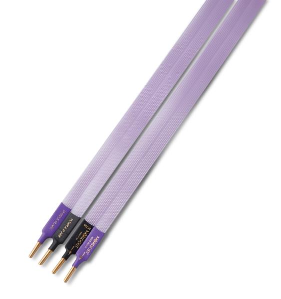 퍼플 플레어 스피커 케이블은 색상 이외에도 외관에서부터 화이트 라이트닝과 차이가 분명해 보인다. +, - 각각 7개씩 총 14개의 심선으로 구성되며 구경도 26AWG로 마무리 지었다. 고유의 FEP로 압출 도포한 필름의 폭도 넓어져 있다. 참고로 화이트 라이트닝의 경우는 26AWG 구경의 OFC 10개로 구성된다. 수작업으로 터미네이션 처리되는 단자는 스페이드와 Z 플러그 바나나 두 가지 옵션이 있다.