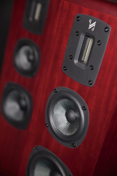 본 기는 특이하게 뒤편에 두 개의 라디에이터, 동사는 ABR이라 부르는 것을 장착했다. 12.5cm 구경이다. 콘은 케블라 계통. 또 같은 구경의 우퍼를 전면에 부착한 바, 10cm 구경의 미드레인지와 더불어 모두 카본 파이버 진동판을 채용했다. 카본 계열은 가벼우면서 강도가 상당하다. 진동판으로 이상적인 소재 중의 하나다. 본 기에 얼마나 많은 신기술이 투입되었는지 능히 상상이 간다. 한편 트위터는 12×45mm 사양의 리본. 본 기의 아이덴티티를 상징하는 유닛이라 해도 과언이 아니다.