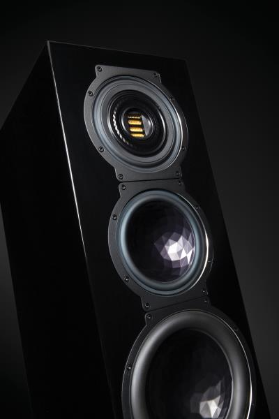 캐비닛은 고급스러운 하이글로시 마감으로 처리되어 있으며, 베이스 리플렉스 포트를 바닥 아래로 설치해 자연스러운 저역을 유도하고 있다. 후면 배플에는 알루미늄 패널을 추가해 견고하게 제작되었다. 대역 재생 능력은 24Hz에서 50kHz로, 만족스러운 대형기의 모습을 갖추고 있다.