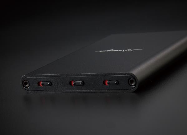 제품을 처음 받자마자 제법 멋진 디자인에 주목하게 된다. 첫 제품임에도 특별한 과장 없이 세련되고 심플한 이미지를 만들어냈다. 알루미늄을 정성 들여 가공한 모습인데, 블랙 톤과 잘 맞물려 좋은 질감을 선사한다. 또한 ‘Made in Korea’ 제품으로, 중국 제조의 값싼 마감과는 차원 자체가 다르다. 무게 역시 휴대용을 고려하여 경량을 추구하는데, 110g 정도이니 일반적인 보조배터리보다 가벼운 셈이다. 크기(WHD)도 대략 6.4×10×0.9cm로 명함보다 약간 더 큰 사이즈. 요즘 포터블 헤드폰 앰프들이 스마트폰 이상의 크기에 무게 역시 만만치 않아 부담스러운 면이 있었는데, 그야말로 실용적인 크기와 무게의 제품이 출시된 셈이다.