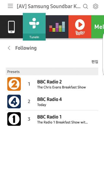 음악에서도 멋진 사운드 퀄러티를 보여 준다. 기존 사운드바 제품들이 음악 플레이에서는 부족한 수준의 음향이었는데, 삼성의 사운드바는 음악 재생에서도 큰 장점을 발휘한다. 독립적인 무선 음악 플레이어로 사용해도 좋을 만큼 하이파이적인 무대를 들려주었는데, 삼성이 왜 이 제품을 홈 엔터테인먼트의 정점으로 소개하고 있는지 알게 했다. 어쿠스틱한 음악이나 라이브 음원에서는 최고의 사운드를 들려주는데, 그만큼 공간감과 사실감에 중점을 두고 튜닝된 느낌이다. 특히 기존 사운드바들이 음악 재생에서 너무 많은 음장과 왜곡을 들려주어 피곤하다는 인상이었는데, 삼성의 접근은 좀더 내추럴함에 중점을 두고 있다. 음향 엔지니어가 음악에 대한 이해가 풍부하다는 것을 짐작할 수 있었다.