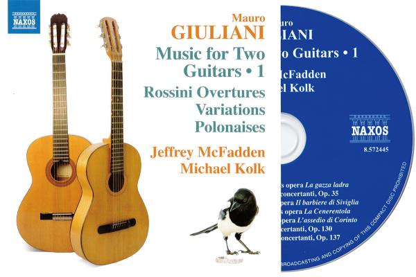 기타 2중주로는 가장 인기가 많은 레퍼토리인 마우로 줄리아니의 작품이 낙소스를 통해 나왔다. 요즘 줄리아니의 작품이 자주 출반되는 듯하다. 로시니 오페라의 익숙한 멜로디에 기타 듀오의 매력적인 음향이 좋은 녹음을 만들어 내기 적합하고, 대편성이 아닌 만큼 제작도 수월한 듯해 대형 음반사보다 마이너 레이블의 음반들이 압도적으로 많다. 또 살펴보면 의외로 줄리아니의 작품에는 과거 거장 기타리스트가 손대지 않아 절대적인 명연이 없어 실력 있는 신예 기타리스트가 도전하기 적당하다. 게다가 기타리스트 둘만의 호흡으로, 기존의 음반들과는 다른 다양한 표현이 가능하다는 점이 이 곡들이 자주 녹음이 되는 이유인 듯하다. 둘 다 캐나다 출신의 중견 연주자인 제프리 맥파든과 마이클 콜크에 대해 필자 역시 잘 알지 못한다. 두 기타리스트의 연주는 매우 담백하고 교과서적이며, 과다한 기교나 변칙적인 요소 없이 마치 교본처럼 정확하고 깔끔한 연주를 들려준다. 또한 이제는 마이너 음반이나 염가 음반이라 칭하기에는 너무나 거대하고 세련되어진 낙소스가 이젠 메이저 음반사다운 가감 없는 녹음으로 연주의 묘미를 살려 준다. 워낙 대중적으로 인기가 있는 작품이므로, 게다가 클래식 애호가가 아니어도 쉽게 접근할 만한 기타 듀오이므로, 듣기 편안한 멜로디가 매력인 누구나 좋아할 만한 음반으로 추천한다. 글 | 신우진