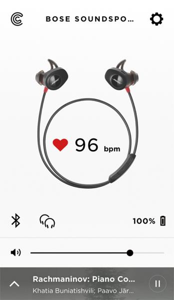 이 제품에 사용하기 위한 보스 커넥트라는 전용 앱이 있는데, 먼저 심박수를 표시해 주고, 페어링도 쉽게 할 수 있게 도와주고, 배터리 잔량이나 볼륨도 표시해 주며, 소프트웨어 업데이트도 할 수 있다. 그리고 신기하게 음악 공유 기능이 들어 있는데, 이 기능과 호환되는 보스 제품을 사용하면 동일한 음악을 같이 들을 수 있다.