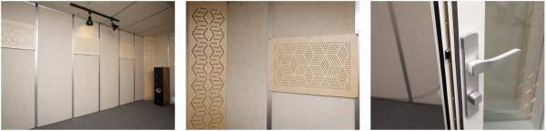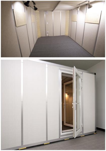 방음벽 또한 남다르다. 방음 부스의 성능이 방음벽의 두께가 아닌 방음벽의 재료에 따라 좌우된다는 것은 이미 알려져 있는 사실이다. 또한 기존의 업체들이 3-4중 구조인 것에 비해 탐소리 큐브는 5중 구조로 되어 있다. 즉, 흡음용 마감재, 흡음용 충진 보드, 차음용 고밀도 패널, 차음용 고밀도 러버 시트, 방음용 고밀도 패널로 구성되어 있다. 이와 같은 구조로 된 것은 많은 시행착오와 실험을 통해 가장 최적의 성능에 맞는 구조를 찾아낸 결과라고 하는데, 작은 차이였지만 5중 구조가 최적이라는 것을 알아낸 후 조금 더 복잡한 공정이 들어가더라도 최고의 성능을 가진 방음 부스를 생산하는 것이 전문 업체로서 당연한 의무라는 생각에 이렇게 제조하고 있다고 한다. 색소폰, 드럼, 그랜드 피아노와 같이 음압이 높은 악기를 연주하기 위한 더블 방음 부스의 경우에는 에어 갭까지 포함해 총 11중 구조로 되어 있어 최고의 방음 성능을 자랑한다고. 또한 방음 부스 내부에 방염 인증 제품을 사용한다는 점, 친환경 제품 조건에 맞는 소재를 사용한다는 점, 방바닥으로 전달되는 음압을 차단하기 위해 차음용 고밀도 러버 시트와 방진 스프링 충진 패드를 사용한다는 점 등도 탐소리 큐브 조립식 방음 부스의 장점이라 하겠다.