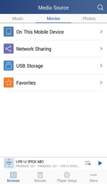 먼저 와이파이 셋업과 펌웨어 업데이트를 위해 TV에 연결해보니 이미 가장 최신 펌웨어로 업데이트되어 있었다. 와이파이 설정을 마치고 스마트폰 앱을 구동하니 아주 잘 된다. 확실히 이전 BDP-103/105(D)의 앱보다 한층 더 편리해졌고, 더 많은 정보를 보여준다.