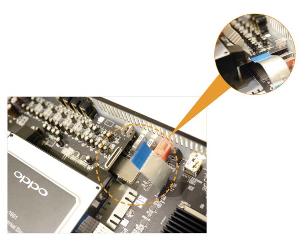 OP 박스 보드를 장착하고 2곳을 볼트로 고정하고, FFC 플렉시블 케이블을 조심스럽게 단자에 끼운다.