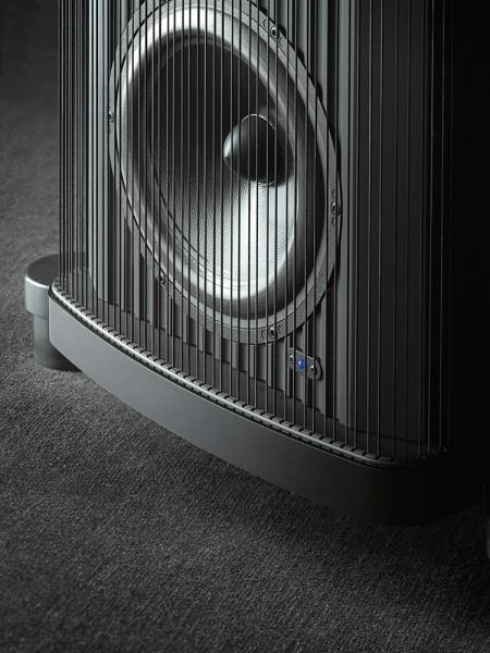 두 번째로 살펴볼 부분은 8개 우퍼의 위용을 만날 수 있는 베이스 타워이다. 206cm 높이에 장착된 드라이버는 8인치 타입으로, 3중 마그넷 베이스 드라이버로 제작되어 높은 SPL과 다이내믹한 사운드 재생이 장점이다. 여기에 내장된 액티브용 앰프는 18개의 하이 커런트 바이폴라 출력 트랜지스터로 구성된 클래스AB 방식으로, 1000W 출력과 4000W의 피크 출력을 지니고 있다. 그리폰의 앰프와 마찬가지로 DC 커플드 회로와 제로 글로벌 네거티브 피드백이 적용되었다. 전원부도 막강한데, 타워 블록마다 200,000㎌의 커패시터가 장착되어 있다. 여유 있는 홀름그렌 차폐 토로이달 트랜스포머를 채용, 완전한 액티브 우퍼의 존재감을 과시하고 있다. 밀폐형 베이스 타워 구조로 내부에는 견고한 보강 작업을 통해 캐비닛의 진동을 억제시켰고, 내부 흡음재는 고급 순수 양모로 채워져 있다. 견고한 캐비닛, 그리고 베이스 드라이버와 액티브 앰프의 조화를 통해 정확한 저역 재생 능력과 엄청난 에너지를 만들어 낸다.