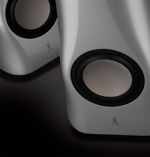 그리고 이번 리뷰에서 살펴볼 XB는 XA를 기반으로 사이즈를 줄인 모델이다. 동일한 패밀리 디자인으로, 마치 짤록한 허리를 가진 몸매가 연상되는 곡선미를 강조한 ‘E-lon’ 캐비닛이 중심에 있다. 트위터 주변부가 더욱 좁고 짤록하게 디자인되어 있으며, 미드레인지와 우퍼로 갈수록 통이 넓도록 설계되었다. 이는 단순히 디자인적 요소라기보다는 최적의 사운드 재생을 위한 결과물로 제시하고 있다. 캐비닛 소재는 합성 인조 대리석을 사용하였고, 높은 밀도를 통한 무진동 인클로저로 제작되었다. 외부는 광택제와 멀티 코팅을 통해 고급스럽게 마감되어 있는데, 모두 수작업으로 완성되었다. 다양한 컬러의 선택이 가능한데, 이번 리뷰에서는 다크 실버 색상을 만났다.