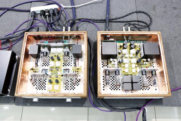 먼저 프리앰프에 대한 이야기이다. 초단관 E80CC 쌍3극관을 사용, 전 대역을 폭넓게 커버할 수 있게 설계했다. WE 205D를 출력단으로 하고, 자체 개발한 출력 트랜스를 사용한 트랜스 출력 방식을 채택, 더 뛰어난 해상력, 음장감, 뉘앙스, 그리고 디테일한 소리를 내는 것에 주력하고 있다. 특히 전원부를 모노모노로 구성, 여유 있는 전압과 전류로 만든 강력한 트랜스를 담아냈다. 정류와 정전압에 모두 진공관을 사용, 따뜻하고, 힘 있고, 질감 있는 음색을 만들어내도록 설계했다. 또한 동 가격대의 기존 제품에서 보기 어려운 고급 부품들을 아낌없이 투입한 것도 인상적이다.