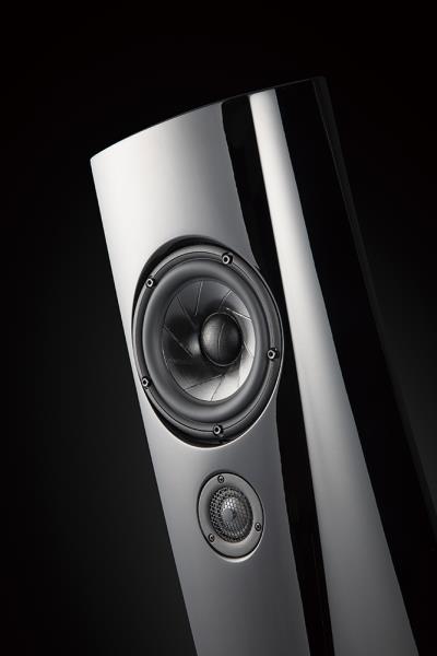 첫 번째로 살펴볼 부분은 역시 캐비닛 디자인이다. 기존 모델과 패밀리 디자인으로, 아름다운 곡선미와 화려한 마감이 어우러진 세련된 스타일이 고스란히 반영되어 있다. 물론 단순히 디자인적인 요소라기보다 음향 공학을 통한 최적의 사운드 재생을 위한 결과물로, 짤록한 허리를 가진 E-lon 캐비닛으로 완성되었다. 소재로는 합성 인조 대리석을 사용, 높은 밀도를 통한 무진동 인클로저로 제작되었다. 고품질 광택제와 멀티 코팅을 통한 고급스러운 마감이 돋보인다. 또한 저역 유닛과 미드레인지 및 트위터와의 거리가 크게 떨어져 있는 것이 독특한데, 이는 철저히 대역 재생 능력을 부각시켜 중·고역의 분해력과 집중력을 높이기 위한 설계다.