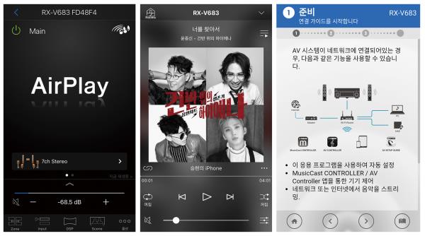 다양한 전용 앱(애플, 안드로이드)을 사용할 수 있는데, 네트워크에 연결된 여러 야마하 제품을 컨트롤하고 음악을 재생하는 멀티 룸 오디오 앱인 뮤직캐스트, 스마트폰을 리모컨처럼 사용해 AV 리시버의 다양한 기능을 설정할 수 있는 앱인 AV 컨트롤러, 기기 설치를 쉽게 할 수 있도록 도와주는 앱인 AV 셋업 가이드가 있다.