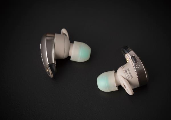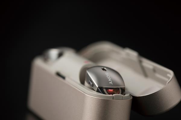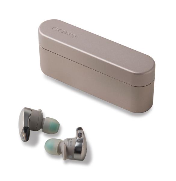 이 이어폰은 생긴 것도 매력적이다. 고급스러운 미니멀한 디자인인데다 마감도 주얼리같이 반짝반짝하다. 첫인상에서부터 사랑에 빠질 것 같은 기분이 든다. 색상은 블랙과 골드 2가지이며, 사진의 제품은 골드다. 이 이어폰의 좌측에는 전원 버튼, 우측에는 노이즈 캔슬링 선택 등 다기능 버튼이 있다. 간편한 핸즈프리 통화 기능도 포함되어 있다. 그리고 투명한 부분에서 LED 불빛을 통해 상태를 알려 주는데, 전원 버튼을 꾹 누르고 있으면 LED가 적색·청색 번갈아가며 불이 들어오며 페어링 모드에 들어가고, 페어링되면 파란 불이 반짝반짝한다. 블루투스 연결을 위해 소니에서는 이 제품에 초고감도 안테나를 사용하고 있으며, 표준 코덱인 SBC보다 음질이 좋은 ACC 코덱을 지원하며, 멀티 페어링 기능도 지원한다.