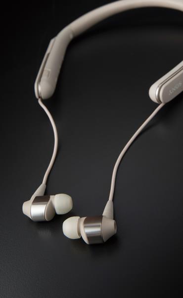 WI-1000X는 일반적인 넥 밴드 스타일임에도, 소니 특유의 디자인 감각이 빛을 발한다. 넥 밴드 제품 중 디자인적으로 가장 뛰어나다고 할 수 있을 정도로 굉장히 감각적이고 고급스럽게 마무리되어 있다. 목에 거는 타입으로 착용감도 굉장히 훌륭한데, 목과 닿는 넥 밴드 안쪽을 가죽으로 처리하여 한층 부드러운 느낌을 선사한다. 밴드 상단 부분도 스테인리스 소재를 적용, 인체공학적인 곡선과 고급스러운 질감이 각별하다. 밴드에는 작은 틈을 마련하여, 이어폰 케이블을 수납할 수 있게 했는데, 단선과 휴대성을 고려한 효율적인 아이디어이다. 색상은 골드와 블랙 2가지로 출시되어 있는데, 사진의 제품은 골드 버전.