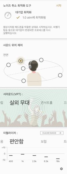 보통 제조사에서 제공하는 어플리케이션을 패스하는 경우도 많은데, ‘Sony Headphones Connect’는 반드시 설치해야 한다고 이야기할 수 있을 만큼, 강력하고 경쟁력 있는 기능을 다양하게 포함하고 있다. 적응형 사운드 제어, 주변 소리 제어, 노이즈 캔슬링 최적화 도구, 사운드 위치 제어, 서라운드(VPT), 이퀄라이저, 음질 모드, DSEE HX, 진동 설정까지 소니만의 특별한 기능들을 이 어플리케이션에 모조리 담았다. 이것저것 튜닝하고 설정하는 재미가 각별한데, 마치 사진의 포토 모드를 적용하듯 쉽고 간편하게 조절할 수 있다. 특히 소리가 꽤 극적으로 변화하기 때문에, 자신에게 맞는 설정들을 찾아내는 것이 주요할 듯하다.
