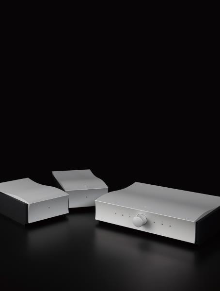 네덜란드에서 건너온 몰라 몰라(Mola Mola)의 프리앰프 마쿠아와 모노블록 파워앰프 칼루가는 군더더기 없는 미니멀한 외관과 세련된 패밀리룩부터가 눈길을 사로잡는다. 옆에서 보면 부드러운 유선형 모양의 섀시 디자인이 영락없이 바닷물고기를 닮았다. 사명으로 개복치를 뜻하는 ‘Mola’를 쓴 이유다. 하지만 더 놀란 것은 이들이 내준 소리. 칼루가는 클래스D 증폭으로 8Ω에서 400W(4Ω에서 700W)를 내는데, 어안이 벙벙해질 정도로 소리가 좋았다. 그럴 수밖에 없는 것이 몰라 몰라를 설립한 엔지니어 브루노 푸제이가 클래스D 앰프 설계의 대가이기 때문. 그가 하이펙스(Hypex) 재직 시절 클래스D 앰프의 고질적 문제였던 고역대 롤오프 현상을 극복한 UcD(Universal Class D) 회로를 개발한 것은 오디오계 전체의 큰 수확으로 평가된다. 칼루가는 이 회로를 더욱 발전시킨 Ncore NC1200 파워 모듈을 커스텀 사양으로 채택했다. 2Ω에서 무려 1200W까지 낼 수 있고 출력 임피던스가 0.002Ω에 불과해 댐핑 팩터가 무려 4000에 달하는 기술적 배경이다. 프리앰프 마쿠아의 내장 DAC은 브루노 푸제이가 직접 설계, 32비트/384kHz, DSD256까지 재생한다.