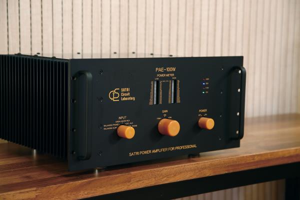 처음엔 그 회로를 앰프에 적용했다가 나중에 CD 플레이어에도 써봤습니다. 그런데 여기엔 문제가 있었습니다. 저항을 지나가는 전류가 전원 환경에 취약했던 것입니다. 전기 사정이 나쁘면 노이즈가 타고 들어왔습니다. 이 부분을 계속 보완해서 현재엔 전원 환경의 영향을 거의 받지 않도록 진화시켰죠. 물론 CD 플레이어뿐 아니라 모든 제품에 말이죠. SCA-7500K와 이번에 소개하는 PA용 앰프인 PAE-100W는 그 최종판이라 보면 됩니다.
