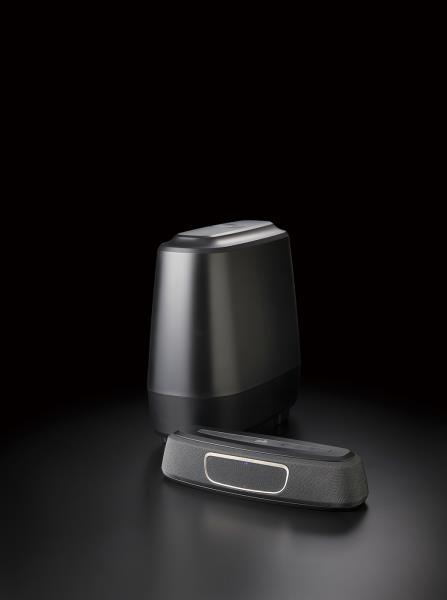 여기서 중·고역 새틀라이트를 보면, 두 개의 트위터와 네 개의 미드레인지가 적절히 배치되어 있다. 트위터는 12mm 구경이고, 미드레인지는 57mm 구경. 이것이 사방으로 넓게 음을 내도록 배치되어, 마치 스테레오 구성을 듣는 듯하다. 한편 서브우퍼는 6.5인치 구경을 넣었고, 총 150W로 구동된다. 그 결과 이 크기에서 상상할 수 없는 40Hz-24kHz의 와이드 레인지를 실현하고 있다.