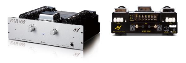 EAR은 팀 드 파라비치니가 1976년 영국에서 설립한 전통적인 진공관 앰프 브랜드인데, 특유의 세련되고 고급스러운 외관을 통해 하이엔드 진공관 앰프 브랜드의 명성을 이어오고 있다. 동사의 제품 중 앰프의 경우는 제법 높은 출력으로 스피커의 편견이 없는 EAR 899 인티앰프를 추천할 만하다. 전면 패널은 EAR의 타 제품의 크롬 광택 패널과 달리 무광 아노다이징으로 처리하여, 기존 분위기와는 또 다른 느낌을 제공하고 있다. 출력관은 개별 블랙 커버로 씌워져 있어, 패밀리 디자인을 강조한다. 프리부와 초단에는 ECC83과 ECC85를 채널당 1개씩 사용하고 있으며, KT90을 채널별 4개씩 패러럴 푸시풀 방식으로 총 8개의 출력관을 채용하고 있다. 이를 통해 클래스A 증폭 방식으로 70W 출력을 만들어 내며, 자기 바이어스 방식을 채택하고 있다. 총 6계통 입력과 프리 입력·출력 단자를 설치하여 별도의 파워 앰프나 프리앰프로 사용이 가능하다. 속도감과 에너지 넘치는 KT90 출력관의 성향을 반영하고, EAR이 추구하는 질감과 밀도 높은 자연스러운 사운드를 제공한다.