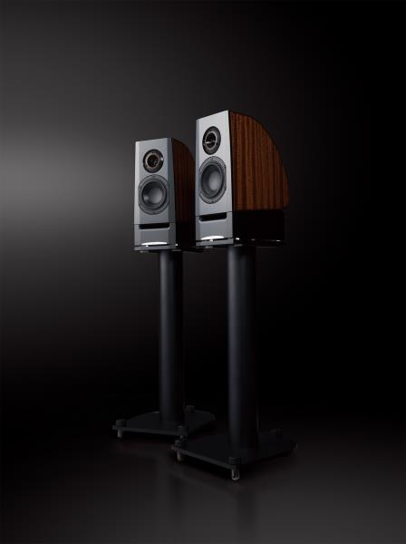 전면 배플과 크로스오버 회로를 수납한 하단 격납고는 단풍나무 집성재, 측면은 2.6mm 마호가니. 크로스오버 회로에는 문도르프 특주 동박 코일과 커패시터를 호화롭게 투입했다. 임피던스는 8Ω, 감도는 85dB, 주파수 응답 특성은 40Hz-30kHz. 저역 하한이 웬만한 플로어 스탠딩 스피커를 뺨치는 점이 놀랍다. 크로스오버를 상당히 높은 5kHz에서 끊은 점도 주목할 만하다. 저역 재생 구조는 일종의 백로드 혼형. 우퍼 후면의 방사음이 인클로저 밑면 덕트로부터 하단 격납고 전면의 슬릿 형태의 덕트로 빠져나간다.