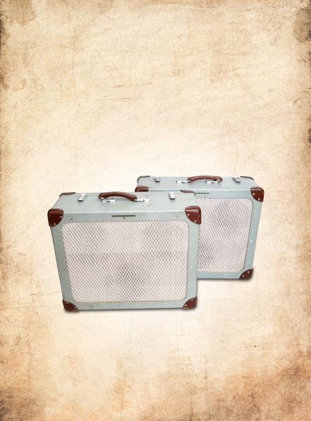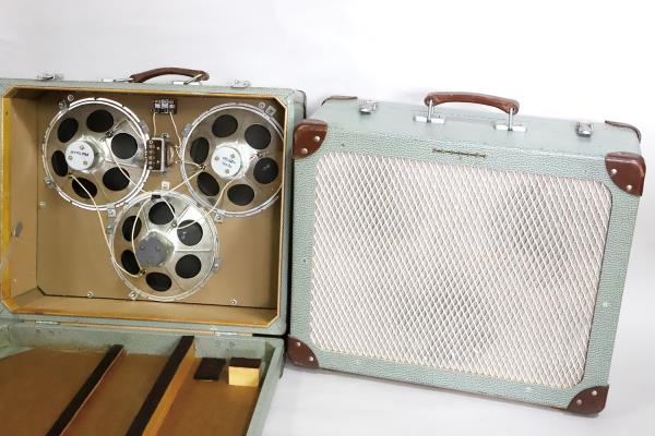 인클로저는 밝은 청색(녹색이 가미된)인데, 전면은 금속 그물망과 천으로 2중으로 되어 있다. 매우 가볍고 튼튼해 수십 년이 지난 지금에 와서도 한 곳도 손상된 데 없이 기능을 유지하고 있다. 손잡이와 코너는 모두 천연 가죽으로 보호되어 있는데, 튼튼할 뿐 아니라 모양도 클래식해 매우 호감이 갔다. 스피커를 연결하는 선재도 도금이 안 된 일반 동선인데, 아직 녹도 슬지 않고 순도도 높아 그대로 사용하기로 한다. 뒷면에도 보호 케이스가 있어 잠그면 완전 밀폐형이 되며 열면 무한 배플 타입의 개방형이 된다. 비교 청취해 보면 두 인클로저의 특징적 음색이 선명하게 드러나는데, 필자의 귀에는 개방형이 호감이 간다. 질감 좋고 저역이 경쾌하기 때문이다.