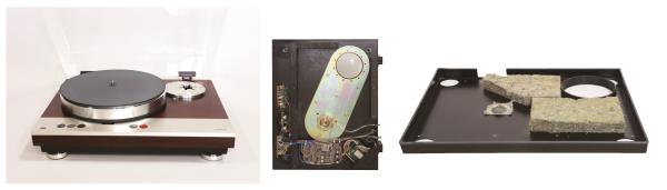 해체해 내부를 살펴보면, 럭스만답게 조목조목 꼼꼼하게 마무리해 놓은 것을 알 수 있다. 특히 중심 축 부분은 상하 턴테이블 바디 압착식으로 대단히 견고한 진동 방지 시스템이며 스트로보나 전원 레귤레이션 장치도 필요 이상으로 고급화되어 있다. 석션 스태빌라이저 역시 무엇인가 구조적으로 심화시켜 놓은 반면 구동 스위치는 절제미를 보여 극도로 단순화시켜 놓은 것이 일품이다. 물론 석션 스태빌라이저 없이 사용해도 휼륭하며 LP 트레이싱 시의 무게 중심 하향 외에는 별 차이가 없이 안정된 소리를 들려준다.