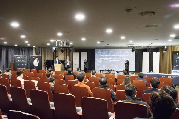 이번 신제품 출시 간담회는 지난 10월 18일, 용산 전자랜드 랜드 홀에서 개최되었다. 두 타임으로 진행되었는데, 3시와 7시 일정이었다. 이번 시청회를 위해 캠브리지 오디오의 CEO 제임스 존슨 플린트 씨가 특별히 한국을 방문했는데, 직접 자신의 히스토리와 캠브리지 오디오의 역사에 대해 설명하고, 새로운 에지 시리즈에 대한 이야기들을 풀어나갔다. 특히 지금까지의 캠브리지 오디오의 역사와 히트작들을 영상물로 보여주었는데, 뮤직비디오 같은 감각적인 장면들도 인상적이었지만, 그동안 캠브리지 오디오에서 오디오 트렌드를 바꿀 만한 명작들을 얼마나 많이 선보였는지 다시 한 번 각인시켜 주었다. 캠브리지 오디오의 첫 인티앰프인 P40도 영상에 담겨 있었는데, 토로이달 트랜스포머를 사용한 첫 번째 앰프라는 사실도 이번에 확인할 수 있었다. 또한 영상에는 캠브리지 오디오의 창립 멤버인 고든 에지(Gordon Edge)의 모습도 등장한다. 누구나 짐작할 수 있듯이, 이번 에지 시리즈는 그의 이름을 딴 것이다. 50주년 기념작에 걸맞은 역사적이고 의미 있는 네이밍이라 할 수 있다.
