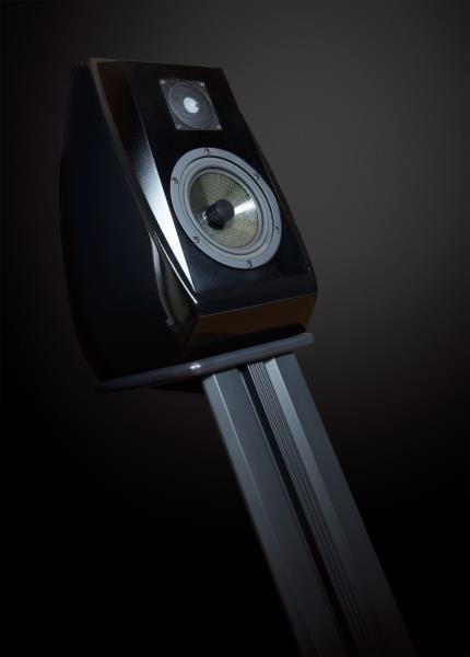 일단 외관을 보면, 인클로저 덩치가 상당히 큰 2웨이 스피커다. 고역은 아큐톤 세라믹 트위터, 중·저역은 17cm 이톤 헥사콘 미드·우퍼가 책임진다. 인클로저는 알루미늄 재질이며, 뒤쪽에 포트가 있는 베이스 리플렉스 방식. 스탠드 마운트 타입인데도, 주파수 응답 특성이 28Hz-22kHz(±1dB)나 된다. 공칭 임피던스는 8Ω, 감도는 90dB, 크로스오버는 2kHz에서 이뤄진다. 무게는 23kg.