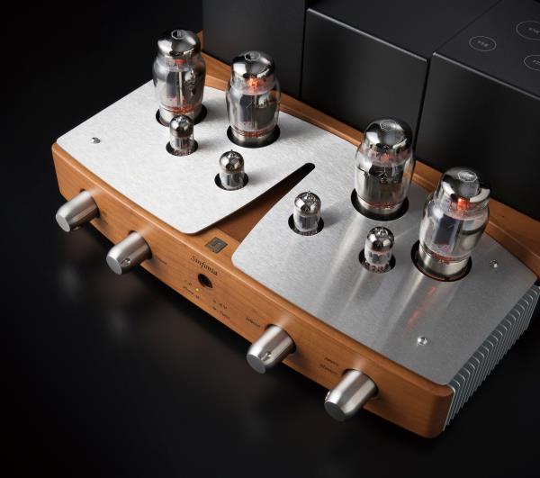 동사 모델 중 신포니아 인티앰프는 가장 표준적인 스타일을 추구한 모범적인 앰프라고 할 수 있다. 언뜻 보아서는 단순히 푸시풀 앰프로 볼 수 있지만, 신포니아는 싱글 엔디드 앰프다. 채널당 2개의 텅솔 6550 출력관을 병렬로 연결한 파라 싱글이며, 클래스A 증폭 방식으로 설계되었고 채널당 25W의 출력을 낸다. 그리고 울트라리니어 결합 방식을 채택했고, 사용이 편리한 자기 바이어스 방식을 채택했다. 이를 통해 6550 출력관 고유의 사운드에 더욱 접근되어 중·저역의 깊이를 중심으로 고역은 순화된 사운드에 중점을 두었다. 프리부에는 쌍3극관인 ECC83과 드라이브용으로는 ECC82를 채널당 각 1개씩 사용했다. 또한 출력 트랜스의 성능도 파라 싱글에 최적화된 설계로 더욱 성능이 향상되어 있으며, 프리부에는 알프스 사의 블루 벨벳 전동 볼륨을 적용하고 있다. 회로적으로 철저히 분리된 듀얼 모노 설계를 기반으로 하며, 채널별로 독립적인 전원부의 경우 정전압 회로 구성을 통해 전압 변동에 따른 음질의 변화를 최소화한 성능을 중시한 설계가 뒷받침되어 있다.