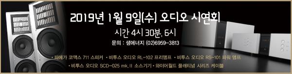 2019년 1월 9일(수) 전자랜드 랜드홀 오디오 시연회는 수입원 샘에너지가 진행하는 것으로, 피에가 코액스 711 스피커, 비투스 오디오 RL-102 프리앰프·RS-101 파워 앰프, SCD-025 mk.Ⅱ 소스기기, 와이어월드 플래티넘 시리즈 케이블 등이 참여할 예정이다. 시간은 4시 30분, 6시 두 타임으로 진행된다. 이 밖에도 2019년에는 전자랜드 랜드홀에서 더욱 다양하고 많은 공연들이 계획되어 있다고 한다.