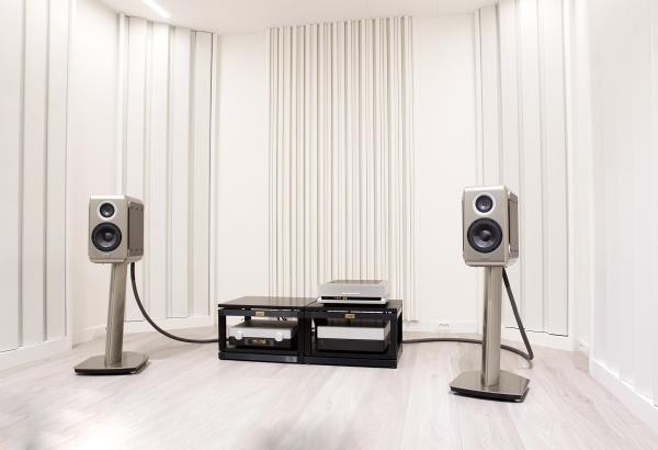 시청 제품의 중심은 ME1-S 스피커. 대형 스피커가 여러 기종 있는 가운데 소형기로는 세 번째 등장하는 스탠드 장착 스피커이며, 품질과 아름다움, 매혹적인 베릴륨 드라이버 등 여러 가지 장점을 자랑한다. 먼저 CST(Coherent Source Transducer)라는 동축 드라이버를 채용하고 있는데, 트위터를 초경량과 높은 강성의 베릴륨으로 새로 개발했고, 9cm 크기의 마그네슘 콘 미드레인지 중간에 이 트위터가 들어 있다. 우퍼는 16cm 크기인데 이상적인 진동 특성을 얻기 위해 MACC(Multi-Layered Aramid Composite Cone)라는 기술을 적용했다. 이 콘은 아라미드 직물과 부직포 소재를 합성해서 제작, 컬러링을 대폭 감소하고 음색을 리얼리티 쪽으로 튜닝하고 있는 것이 특징. 특이하게 캐비닛 양 측면에는 금속 플레이트가 부착되어 있는데, 이 플레이트 아래에 슬릿 모양의 베이스 리플렉스 포트(Bi-Directional ADS Port)가 있고, 포트의 도입부는 나팔 모양으로 되어 있다. 이를 통해 부드럽고 효율적으로 저역을 증폭시키고, 포트에서 발생될 수 있는 불필요한 소리와 인클로저 내부의 정재파 등의 영향을 제거하면서도 풍부하고 강력한 저역 재생의 효과를 거두고 있다는 설명.