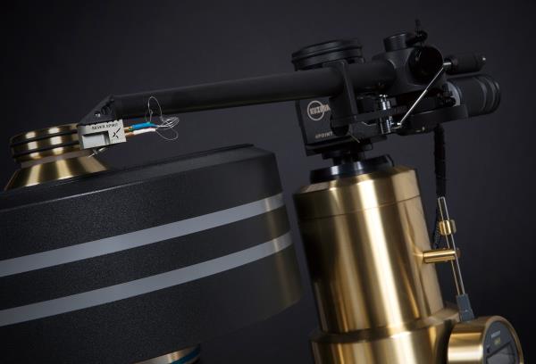 슬로베니아의 쿠즈마는 완벽한 아날로그 사운드 재생을 목표로 1982년에 설립되어 현재까지 전 세계 아날로그 유저들의 사랑을 받고 있다. 동사의 플래그십 턴테이블 스타비 XL DC는 1999년부터 제작된 롱런 모델로. 기존 모델 대비 토크 값을 두 배로 높인 DC 모터를 적용, 22kg의 플래터를 가볍게 회전시킨다. 7kg의 모터 어셈블리, 14kg의 톤암 타워, 27kg의 베이스는 모두 황동으로 제작하고, 고밀도 알루미늄과 아크릴의 다층 플레이트 구조를 가진 플래터는 3cm 두께의 스핀들 샤프트를 적용했다. 톤암 타워의 경우 리니어 타입의 볼 베어링 시스템을 적용, 0.1mm씩 80mm까지 아지무스 변동 없이 VTA 조정이 가능한 부분도 상당히 매력적이다. 3개의 첨탑을 연상시키는 약 80kg의 육중한 외형은 매끈한 황금색 베이스 위에 블랙 톤의 플래터를 모터와 톤암 타워가 각각 양쪽에서 받치고 있는 것처럼 보여, 안니발레 카라치의 ‘지구를 받치고 있는 헤라클레스’를 연상시킨다. 황동, 알루미늄, 아크릴의 복합물성을 교묘히 활용한 이 턴테이블은 진동의 흡수와 제어, 그리고 외부 소음을 완벽하게 차단한다. 실제 플레이를 해보면 남성적인 육중함이 느껴지는 로우·미드 영역의 어퍼 베이스가 견고한 무게 중심을 만들고, 넓은 대역폭의 정보량이 깊고 장중한 원근감을 표현하여 대단한 생동감과 균형감이 느껴진다. 그야말로 하이엔드 턴테이블이 지녀야 할 덕목과 자질을 갖춘 제품이다.