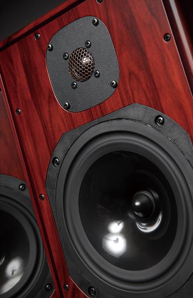가격 390만원(체리), 420만원(로즈우드, 유칼립투스) 구성 2웨이 2스피커 인클로저 베이스 리플렉스형 사용유닛 우퍼 20cm 래디얼 2, 트위터 2.5cm 재생주파수대역 45Hz-20kHz(±3dB) 임피던스 6Ω 출력음압레벨 86dB/W/m 파워 핸들링 150W 크기(WHD) 27.2×52×30.5cm 무게 13.2kg