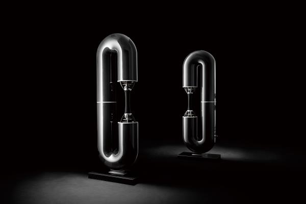 사진으로 보면 위아래 각각 반대 방향으로 배치되어 있는 것이 미드·우퍼 2기이고, 그것을 중간에서 연결하고 있는 가늘고 긴 부분이 원통형 트위터이다(스펙은 모두 비공개). 구부러진 환기통 같은 형태는 일종의 미로형 스타일인 것 같은데, 여기서 미드·우퍼의 대역이 증폭되어 후면의 덕트로 소리가 빠진다.