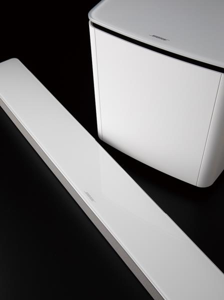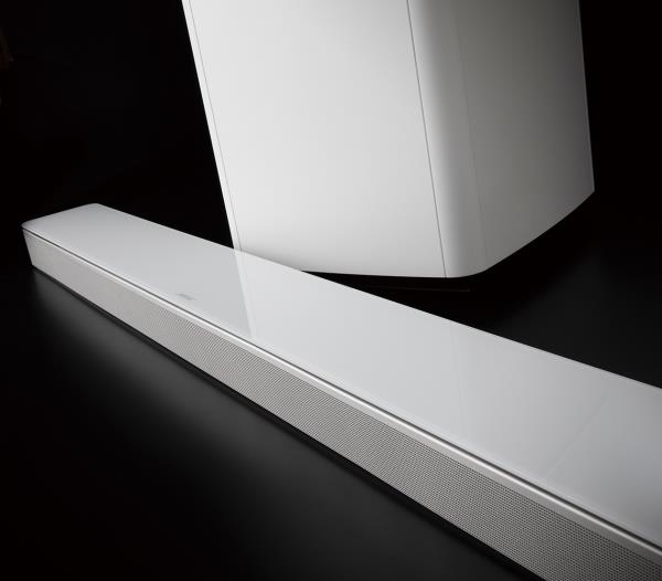 그야말로 눈부시게 아름답다. 디자인만으로도 이렇게 매력적으로 다가온 사운드바가 또 있을까 생각할 정도로, 그 유려한 디자인 감각은 그야말로 각별하다. 아무래도 이전에 출시한 사운드터치 300 사운드바의 디자인 콘셉트를 따르고 있지만, 강화 유리로 처리한 상부 디자인의 변화로 제품 전체적인 이미지가 완전히 달라졌다. 색상은 블랙과 아틱(Arctic) 화이트로 구분되는데, 특히 이 아틱 화이트의 아름다움은 이름 그대로 북극의 눈을 담아낸 것처럼 화사함 그 자체이다. 여성 고객은 물론이고, 남성들까지 마음을 설레게 하는 그 순백의 유려함이 깃들어져 있는 것이다. 그러고 보면 유명 브랜드의 사운드바 제품들이 블랙이나 실버 일변도인데, 화이트로 깜짝 변화를 준 보스의 과감함은 확실히 칭찬할 만하다. 특히 서브우퍼까지 같은 콘셉트로 통일시켜, 완벽한 일체감을 보여준다.