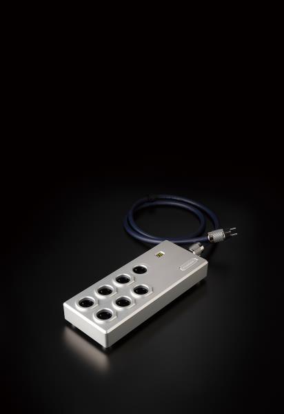 이 멀티탭은 현재로서는 투입 가능한 모든 것이 아낌없이 투입되어 있는 하이엔드 제품이다. 섀시는 알루미늄을 통째로 절삭 가공해 놓았으며 여기에 콘센트는 특급으로 알려진 독일제 Berker 제품. 그리고 특이하게 디지털 전압 표시기를 포함시킨 것도 다른 멀티탭에서는 볼 수 없는 기술인데, 제작사의 오랜 기술력이 아니면 만들 수 없는 테크닉일 것이다. 여기에 무거운 전원 케이블을 설치할 경우 그 케이블이 쳐지지 않도록 케이블 서포트까지 병설시켰다. 오랜 체험의 발상이다.
