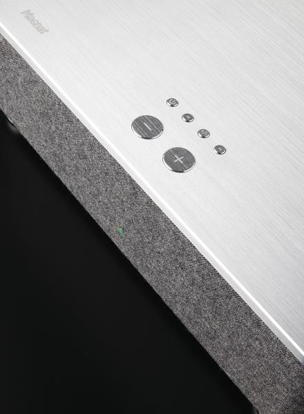 굉장히 유니크한 디자인 콘셉트이다. 무려 알루미늄과 패브릭을 조합해 놓았는데, 그 배치가 제법 독특하다. 보통은 알루미늄 섀시나 패브릭 그릴 중 하나의 통일된 콘셉트를 강조하기 마련인데, 마그낫의 이 제품은 그 두 가지를 절묘하게 조합시켜 놓았다. 상단은 세련된 알루미늄을, 하단은 감성적인 패브릭을 담아냈는데, 차가움과 따뜻함, 의외로 근사한 이미지가 그려지는 레이아웃이다. 물론 상단 전체를 알루미늄으로 제작한 것은 사운드를 업그레이드하기 위한 일종의 묘수다. 알루미늄 두께 역시 10mm나 되는데, 일반적인 플라스틱 섀시들과는 출발점 자체가 다르다. 당연한 이야기겠지만, 인클로저가 단단하면 불필요한 진동이 줄어들고, 소리는 더욱 맑고 명료해진다는 것이다. 이에 더하여 바닥 부분에도 견고한 풋이 마련되어 있는데, 이 역시 마그낫의 제품 철학을 알 수 있는 부분으로, 사운드 업그레이드를 위한 세세함이 확실히 돋보인다.